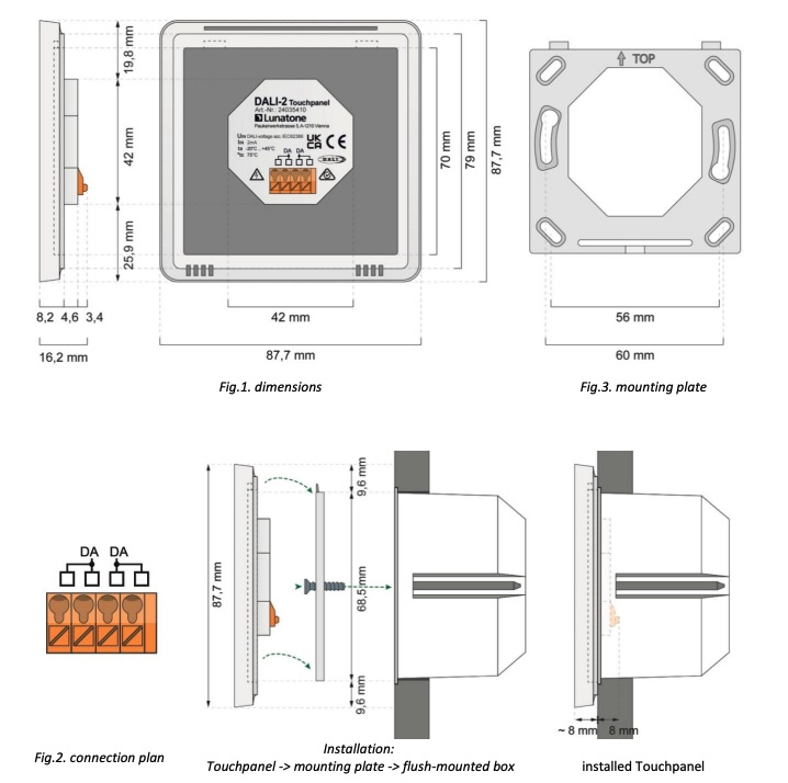 DALI-2 Touchpanel: DIM, 4 Scenes, Tunable White, Sterowanie LUNATONE