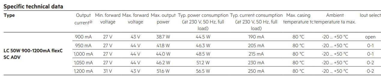 Zasilacz LED LC 50W 900-1200mA flexC SC ADV