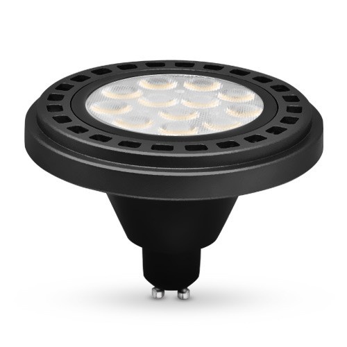 Żarowka AR111 GU10, 30°, 12W, barwa światła ciepła biała, obudowa czarna, klosz ryflowany, kąt rozsyłu światła 30°