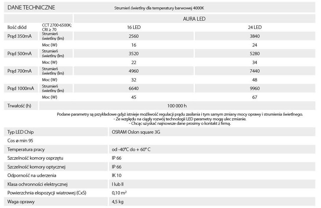 Oprawy mają wymienny moduł LED przy zastosowaniu podstawowych narzędzi.