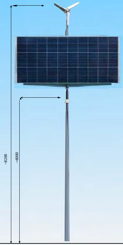 Stalowa, bardzo wytrzymała, certyfikowana konstrukcja zapewnia bezpieczeństwo w każdych warunkach pogodowych. Wariant V2 oznacza ośmiokątny słup stalowy zwężany ku górze o bardzo wytrzymałej konstrukcji (patrz zdjęcie). Konstrukcja jest montowana na dołączonym fundamencie prefabrykowanym, dobranym i przeliczonym do ciężaru wynikającego z zawieszenia paneli solarnych, turbiny wiatrowej i oprawy LED. Zapewnia to szybki montaż i stabilność latarni. W skład konstrukcji wchodzi również stelaż pod panel solarny i turbinę wiatrową.