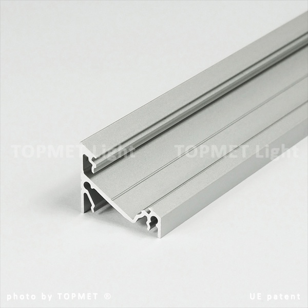 CORNER14 – profil kątowy. Konstrukcja profilu pozwala uzyskać kąt świecenia 30° lub 60° zależnie od preferencji. Doskonały do oświetlania gablot, montowany na płasko lub w narożnikach.