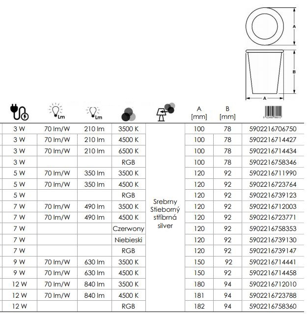 | Moc | 7x1W |