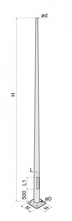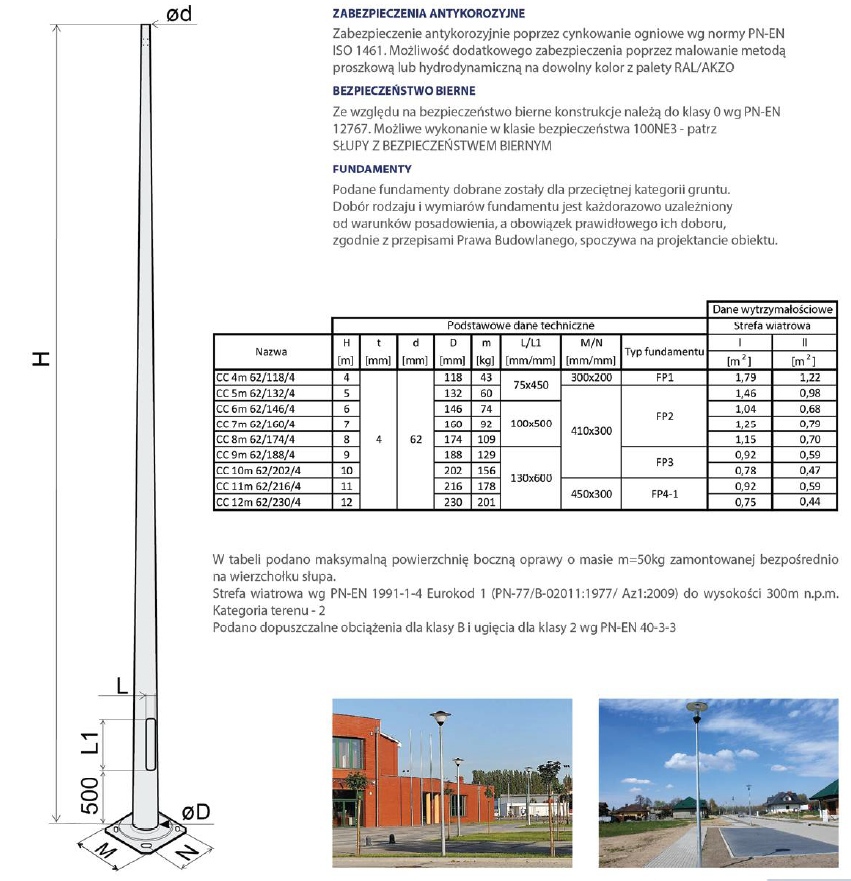 Słupy oświetleniowe posiadają certyfikat zgodności z normą PN-EN 40-5. Wzdłużna spoina trzonu z niewidocznym szwem wykonana laserowo wg normy PN-EN ISO 15614-11.