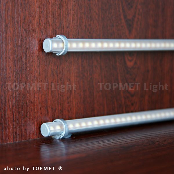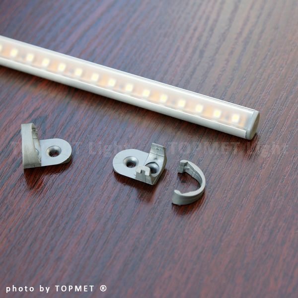 Najbardziej popularny uchwyt PE płaski z możliwością obrotu można montować na powierzchniach płaskich i w narożnikach gablot, witryn, regałów... Wariant ten jest ekonomiczny i bardzo łatwy w montażu. Zależnie od gęstości (mocy) użytej taśmy LED nadaje się zarówno do zastosowania dekoracyjnego, jak i ekspozycyjnego.