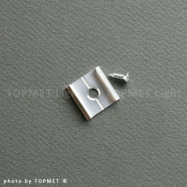Element wykonany z surowego aluminium służący do mocowania profili do powierzchni montażowej. Kompatybilny z profilami LED: SURFACE, GROOVE, CORNER, BACK. Komplet zawiera 2 uchwyty i 2 wkręty. Sugerowana ilość: 1-2 komplety (2-4 szt.) na 1mb profilu.