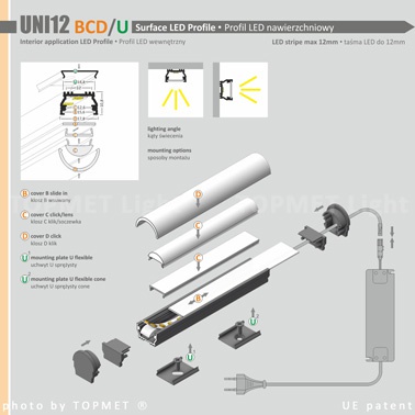 Zaślepka dedykowana do profilu UNI12 z kloszem KLIK D