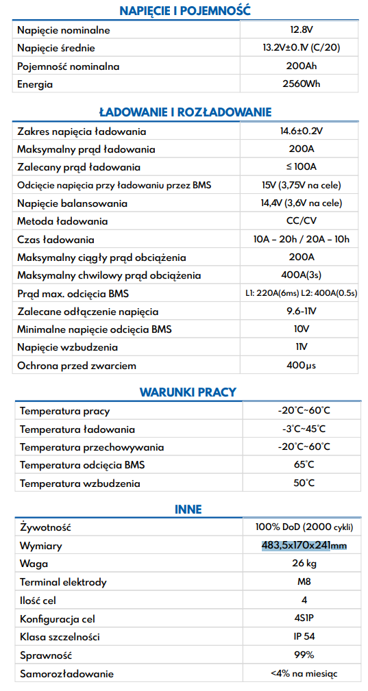 | Pojemność akumulatora | 200 Ah |
