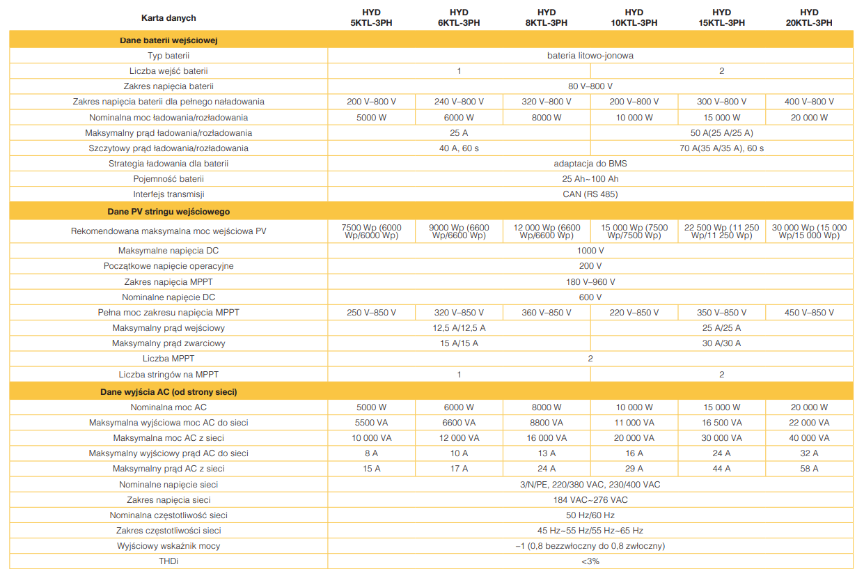 Trójfazowy falownik hybrydowy Sofar Solar HYD KTL-3PH to urządzenie charakteryzujące się wysoką wydajnością oraz prostą instalacją. Służył do oceny mocy z paneli fotowoltaicznych na energię zasilającą dom. Jest to możliwe zarówno do instalacji na siatce, jak i poza siecią.