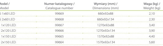 Świetlówki LED zamawiane oddzielnie