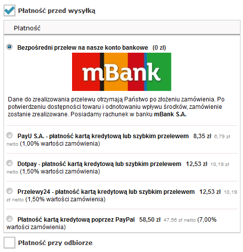 W tym kroku można zaznaczyć interesującą nas formę płatności za zamówienie (zobacz szczegółowy opis płatności).