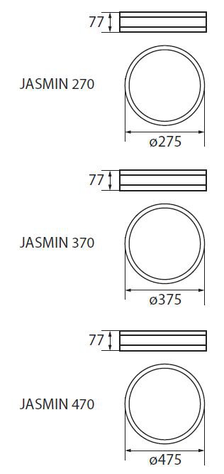 W zależności od upodobań lub wnętrz, w których chcemy zastosować plafoniery JASMIN, możemy teraz wybrać pomiędzy trzema kolorami: wenge, biały dąb lub biały mat. Wszystkie plafoniery dostępne są również w trzech rozmiarach o średnicy: 270mm, 370mm oraz 470mm.