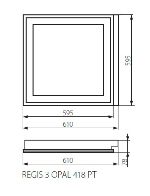 Oprawy REGIS 3 przeznaczone są do montażu w stropie podwieszanym 600x600 mm oraz posiadają płytę z polimetakrylanu metylu (PMMA), która umieszczona została w podwieszanej ramce.