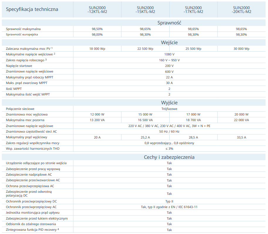 Falowniki 3-fazowe Huawei SUN2000 - M0/M2