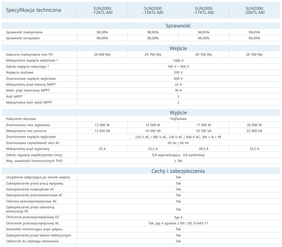 | SUN2000 | 12KTL-M0 | 15KTL-M0 | 17KTL-M0 | 20KTL-M0 |