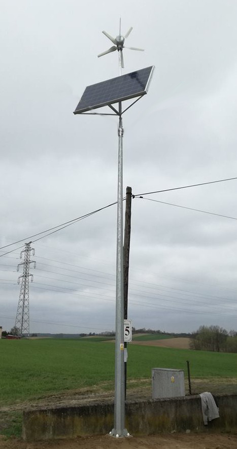 Zastosowanie turbiny wiatrowej (zazwyczaj minimum 300W) zapewnia ładowanie akumulatorów w warunkach bardzo niskiego nasłonecznienia i dodatkowo wydłuża czas pracy urządzeń. Turbina wiatrowa jest wyposażona w hamulec, dzięki któremu przestaje pracować, kiedy nie ma takiej potrzeby.