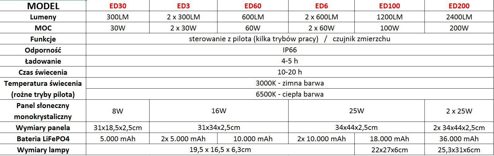 Panel nie wymaga dodatkowych regulatorów ładowania, gdyż jest on wbudowany w lampę.