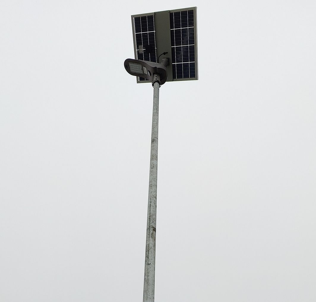 Lampa solarna LED Delphini II ze słupem stalowym i fundamentem 5-7m