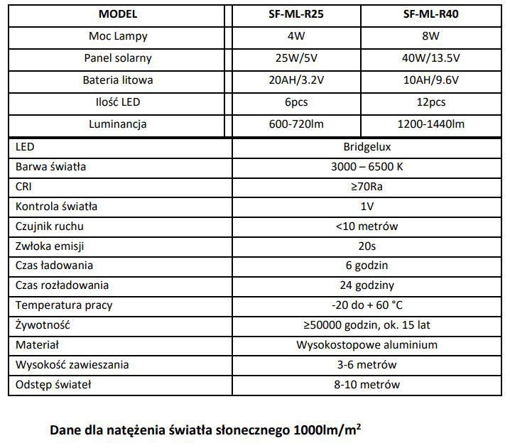 - Dłuższy czas pracy – funkcjonuje niezawodnie w czasie 3-4 ciemnych, deszczowych dni.