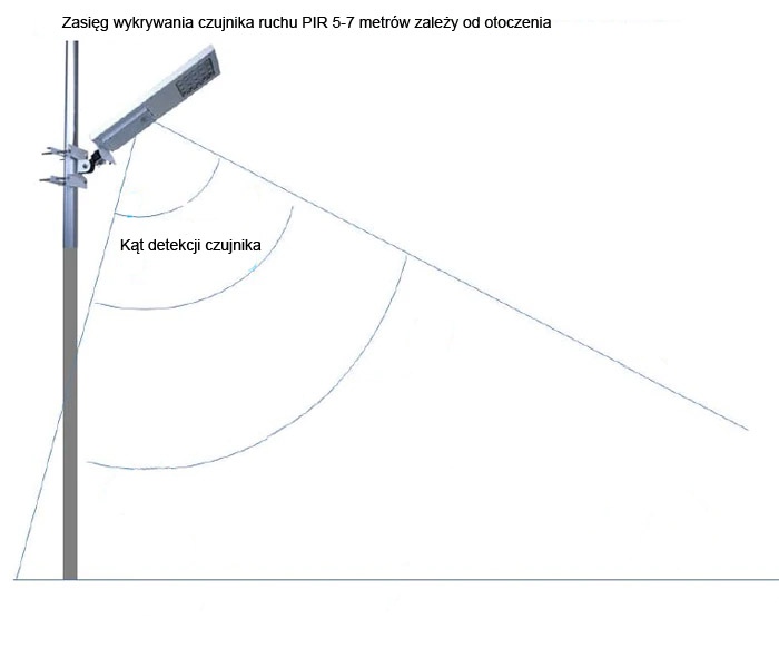 - 12-watowe źródło CREE o mocy 1300 lumenów (tryb pełnej mocy) aktywowane czujnikiem ruchu PIR w trybie normalnej pracy lub w trybie dim -150 lumenami.