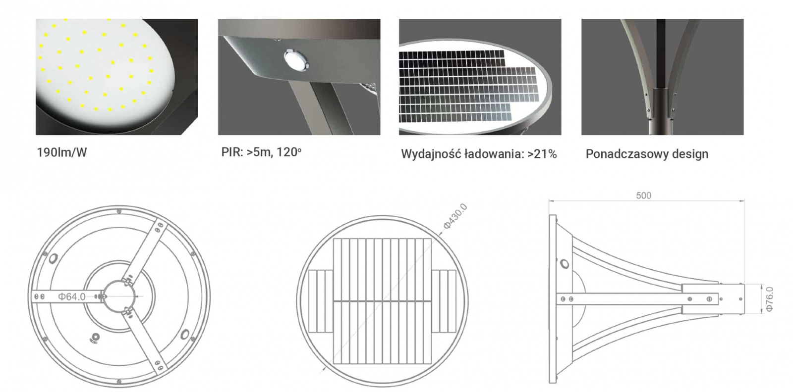 Aluminiowa obudowa, odporne na wysokie temperatury akumulatory o ultra dużej pojemności oraz długiej żywotności, zapewniają doskonałą trwałość i niezawodność. Wyjątkowo jasne i wydaje chipy LED (SSC, 190lm/W) oświetlające powierzchnie 360° pod latarnią, baterie wspierające ciągłe oświetlanie nawet do 10 nocy sprawiają, że latarnia swoją konkurencję pozostawia daleko w tyle.