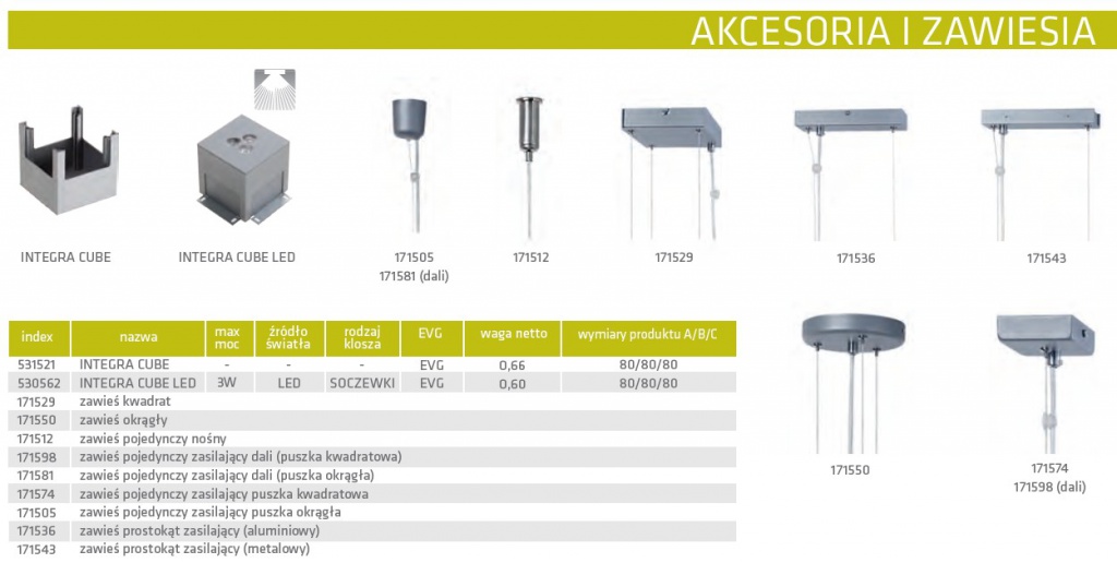 Oprawy oświetleniowe wiszące / Akcesoria do opraw zwieszanych