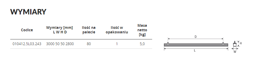 obudowa oprawy wykonana z aluminiowego profilu, anodowanego w kolorze szarym, boki oprawy zakończone zaślepkami wykonanymi z tworzywa sztucznego, klosz mleczny