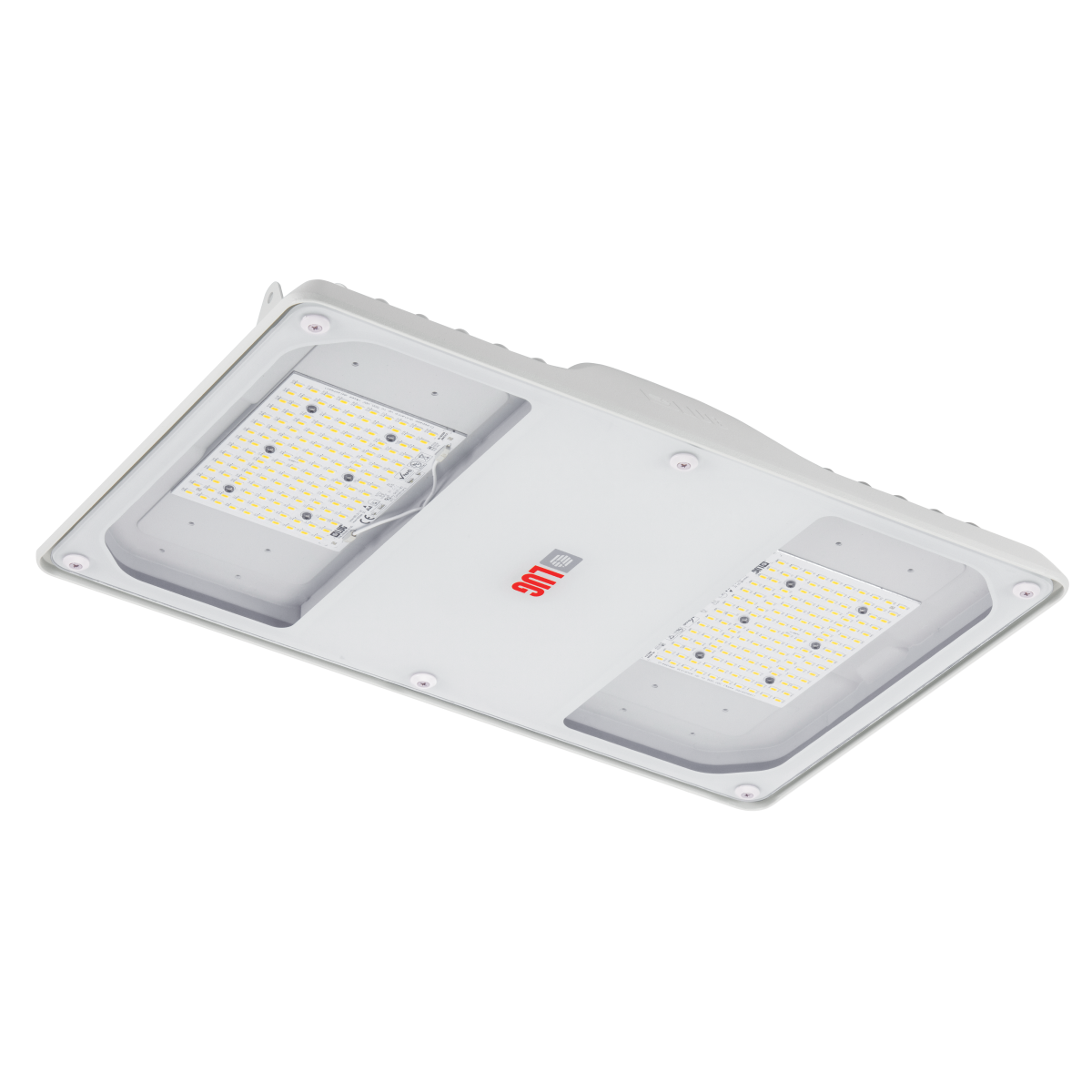 Przemysłowa oprawa z nowoczesnymi źródłami światła LED.