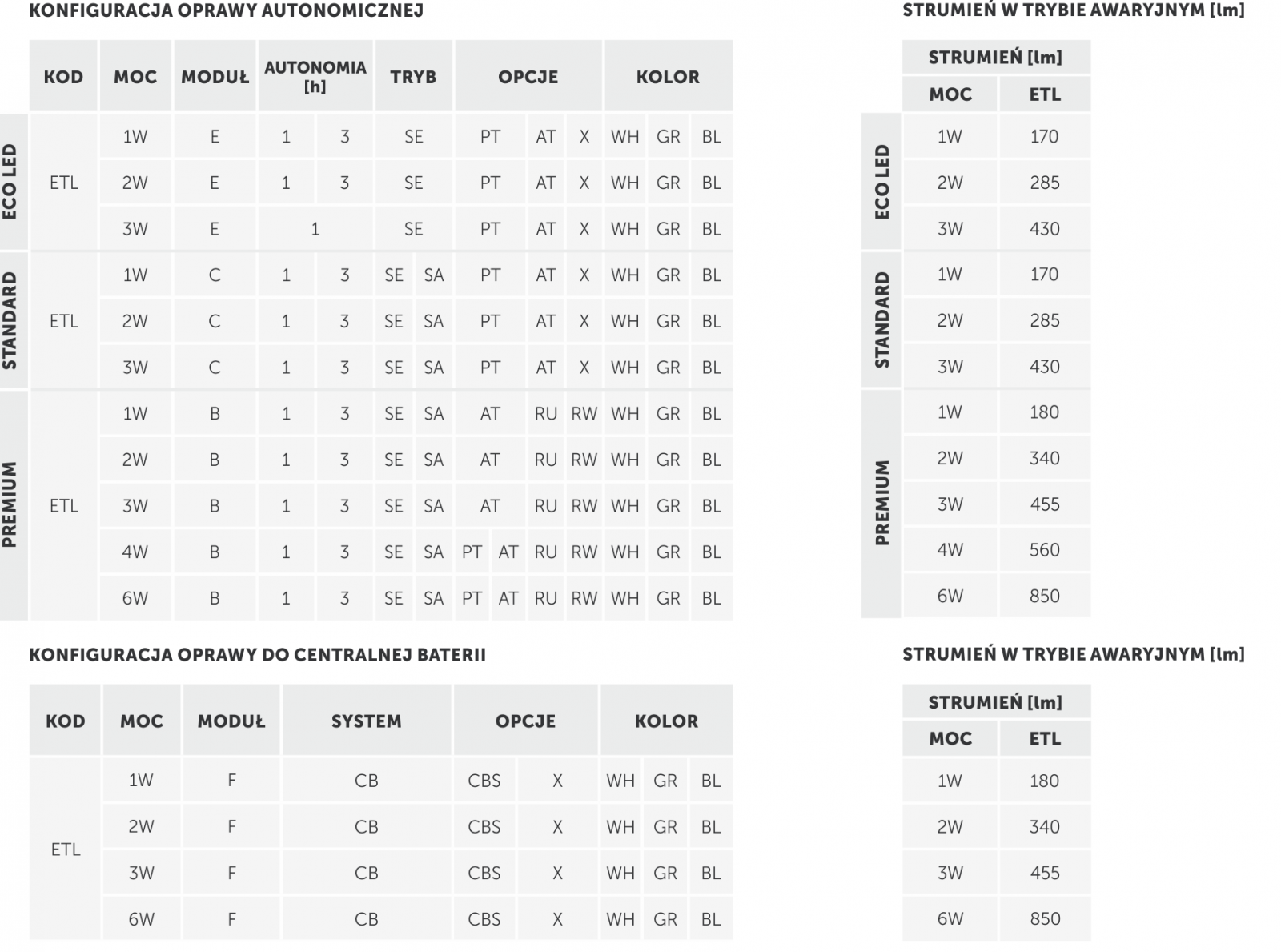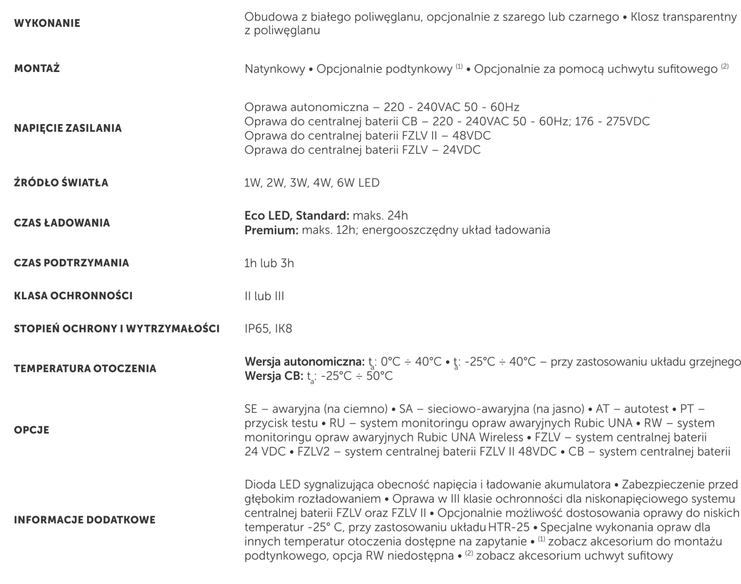 Oświetlenie awaryjne - parametry |