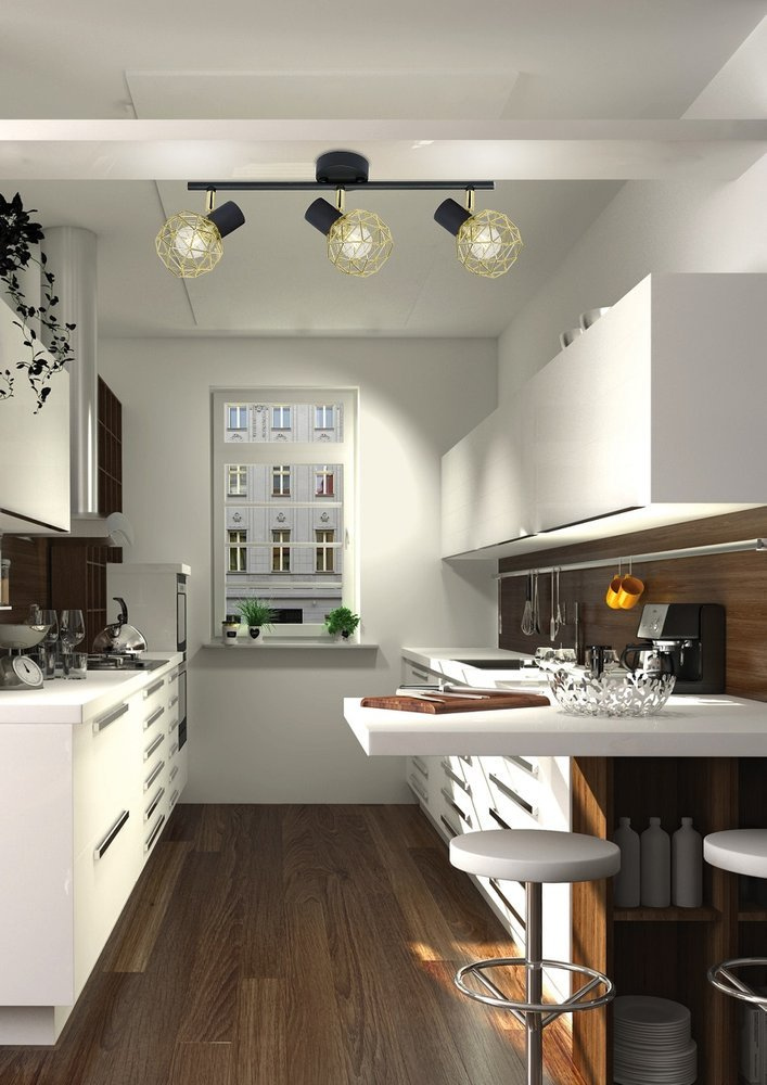 Lampa Sufitowa Listwa E14 Czarny Klosz Złoty