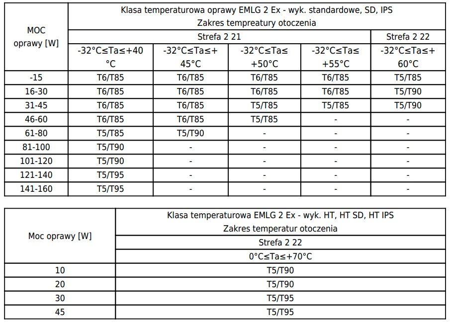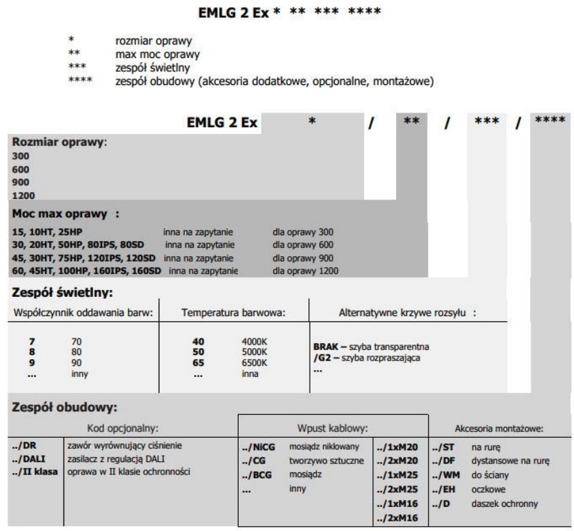 Oprawa EMLG 2 Ex przeznaczona jest do oświetlania: