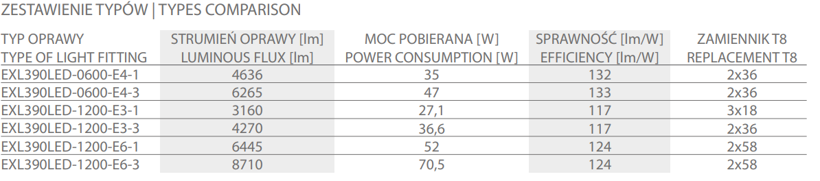 pracy awaryjnej strumień oprawy zostaje zredukowany do 50%, co wydłuża czas