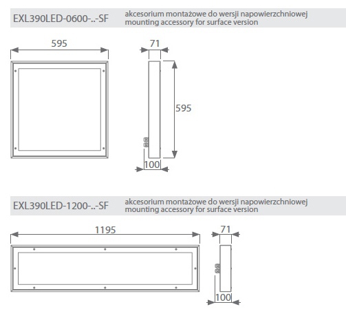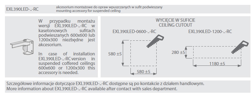 podwieszanych lub opcjonalnie na powierzchni sufitu