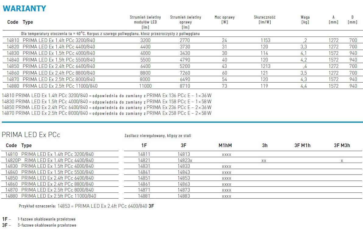 • Na zapytanie dostępne wersje CRI > 80: 3000 K, 5000 K