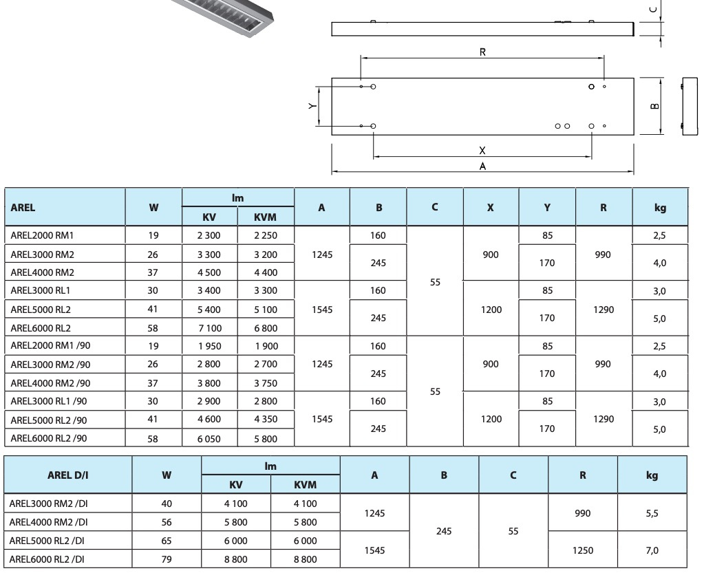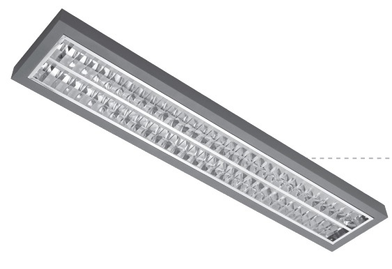 Montaż natynkowy lub zwieszakowy. Do stosowania przy stanowiskach komputerowych, biurach, pomieszczeniach handlowych i ogólnego przeznaczenia z wysokimi wymaganiami co do ograniczenia olśnienia
