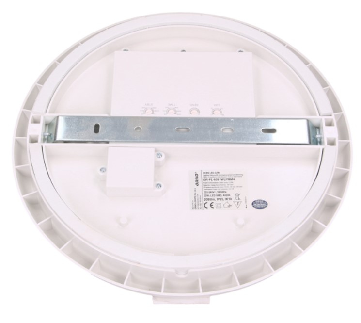 Plafon przeznaczony jest do oświetlania pomieszczeń takich jak: klatki schodowe, korytarze, werandy, piwnice, garaże, pomieszczenia gospodarcze, szatnie, oświetlenie na zewnątrz budynku itp. Wyposażony jest w nowoczesne diody LED SMD, które gwarantują dużą energooszczędność i długą żywotność plafonu oraz w mikrofalowy czujnik ruchu. Czujnik zmierzchowy w zależności od ustawień załącza oświetlenie tylko wtedy gdy jest taka potrzeba. Dzięki czterem potencjometrom czujnik może być ustawiony odpowiednio do potrzeb, tak aby działać dokładnie w momencie przebywania i ruchu osób na danym obszarze. Dodatkowo posiada funkcję przyciemnienia do 20% swojej mocy w wybranym czasie. Regulacja: czasu świecenia, czułości natężenia światła, zasięgu wykrywania ruchu oraz czasu przyciemnienia. Materiał: klosz poliwęglan (PC), nietłukący, mleczny.