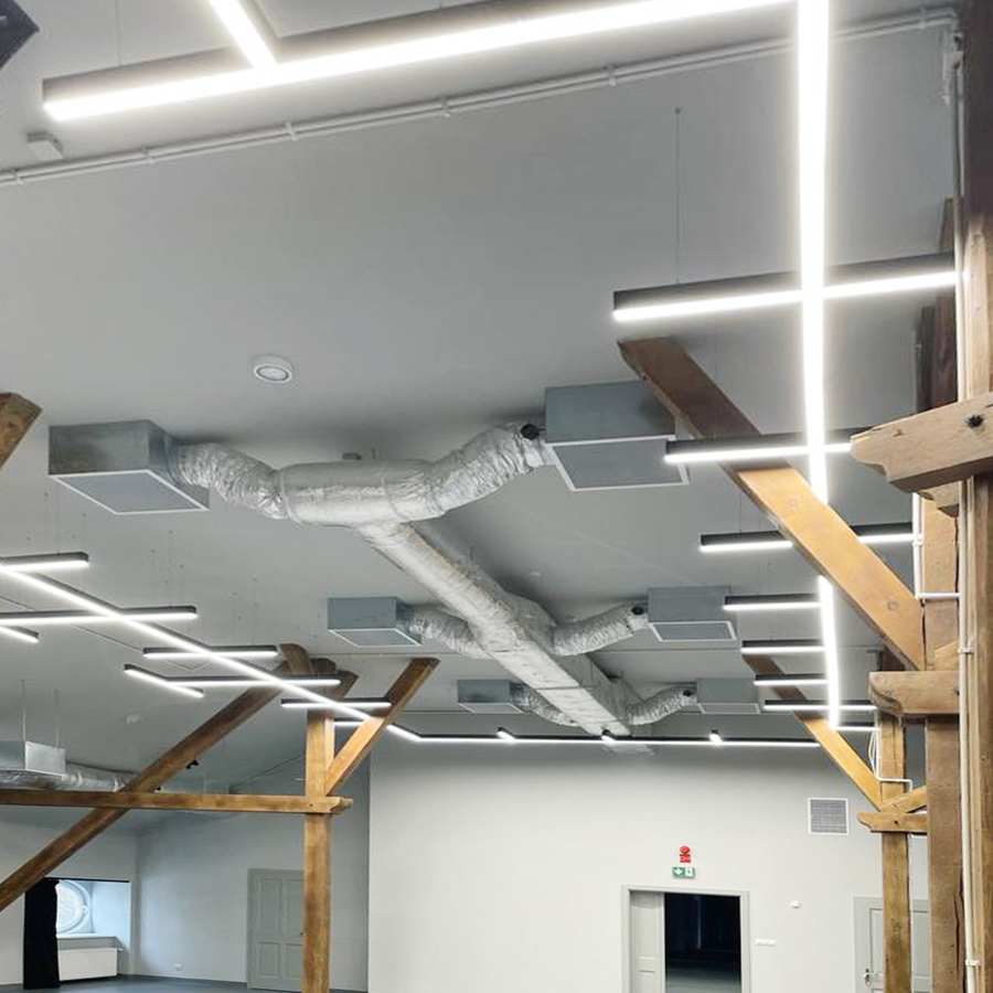 Oprawa w kształcie litery X stanowiąca element nowego systemu opraw LED przeznaczony do łączenia w linie. Jest eleganckim i efektywnym rozwiązaniem sprawdzającym się w oświetlaniu biur, sali konferencyjnych, recepcji oraz innych powierzchni pracy.