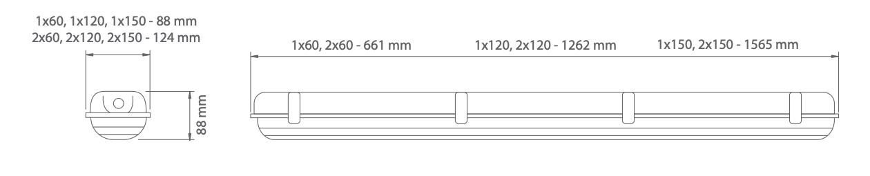Nowoczesna oprawa w technologii LED. Wykonana z poliwęglanu, solidna (IK08) i hermetyczna (IP65) konstrukcja przeznaczona jest do oświetlania zwłaszcza wnętrz przemysłowych, magazynowych, piwnic, itp. 6 podstawowych rozmiarów to elastyczność wyboru wielkości obudowy oraz jej mocy (19W-60W) i strumienia (2100lm-5800lm).