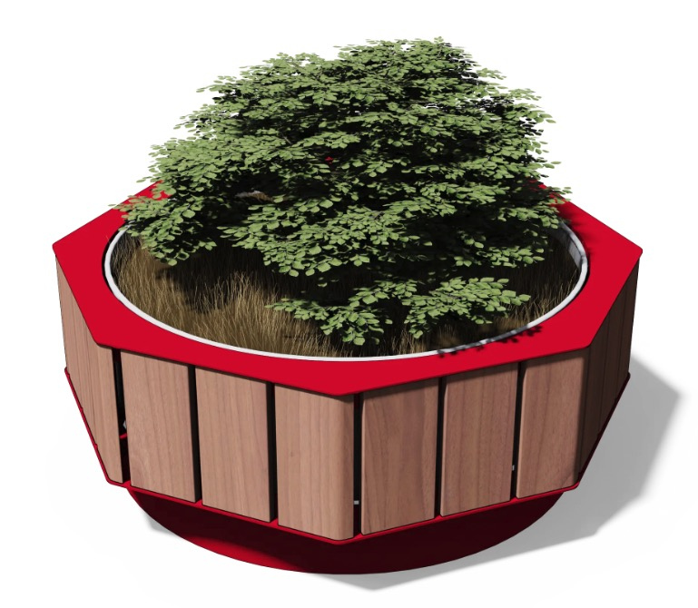 Wolnostojącą donicą można manipulować, zdejmując ją z boków pod okładziną.