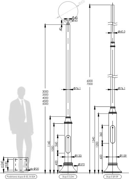 Słup stalowo - aluminiowy E