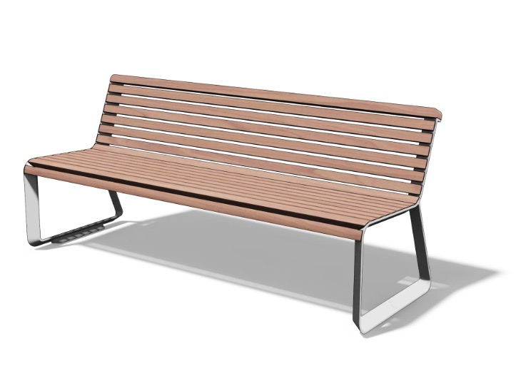 Rama nośna siedziska i oparcia składa się ze ścian bocznych ze stopu aluminium i ukrytego stalowego wzmocnienia siedziska. Do nich mocowane są drewniane szczebliny siedziska i oparcia za pomocą nierdzewnych (A2) łączników. Ławka przeznaczona jest dla 3 osób, nośność to 450 kg (3 x 150 kg).
