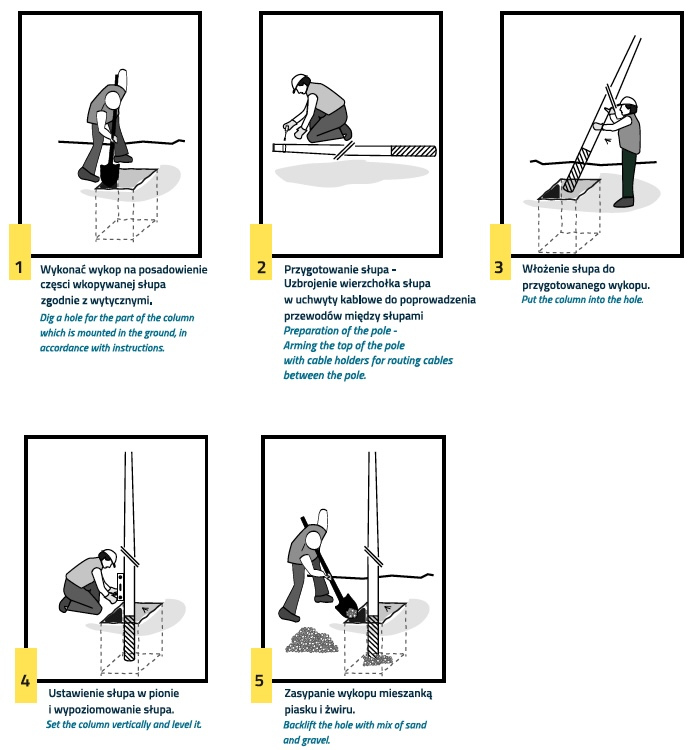 - montaż słupa kompozytowego może wykonać dwóch pracowników;
