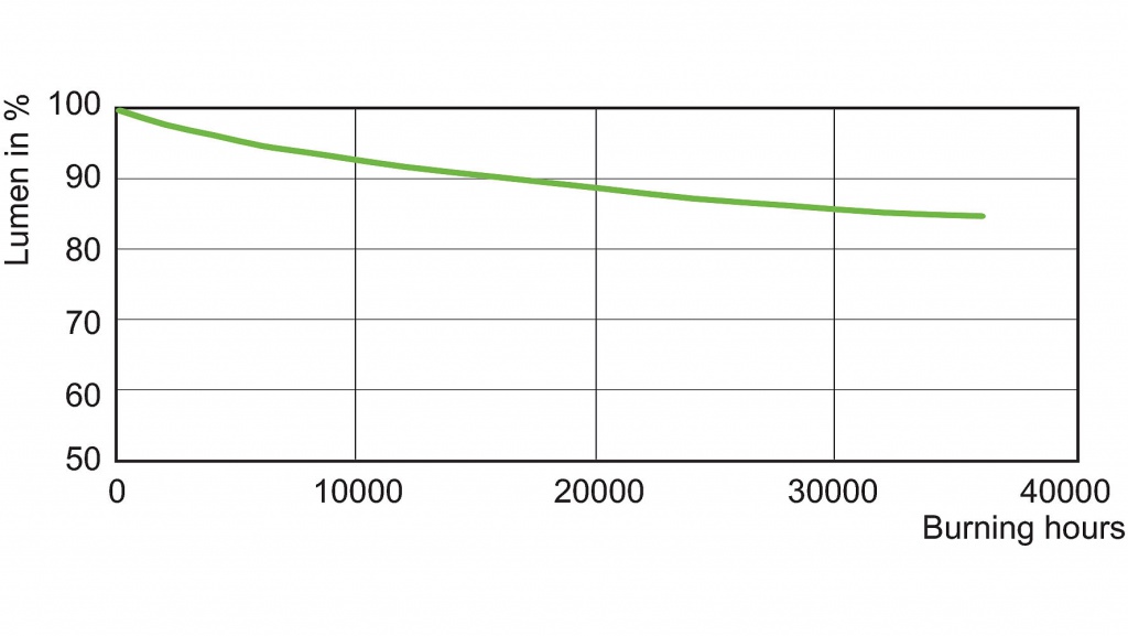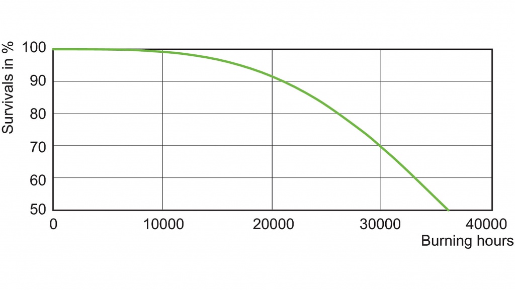 - Cyrkonowo-aluminiowy pochłaniacz gazów zapewnia optymalne utrzymanie wartości strumienia świetlnego i niską zawodność