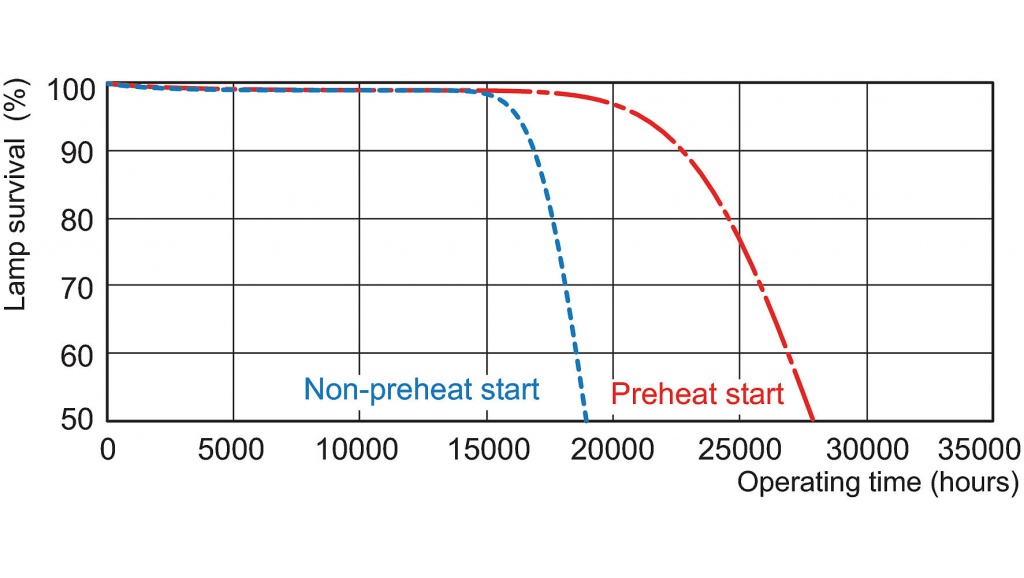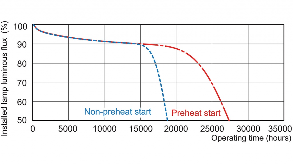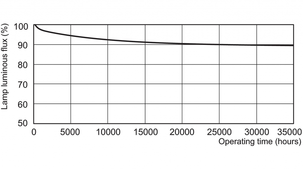 - Maksymalny strumień świetlny osiągany w temperaturze ok. 35°C w pozycji swobodnego jarzenia