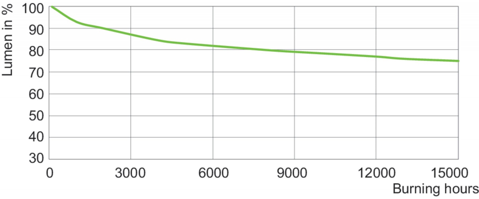 | Utrzymanie strumienia świetlnego 12000 h (Nom) | 77% |