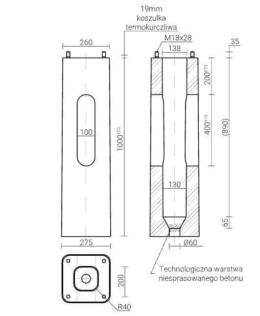 Tulejki termokurczliwe - zakładane na końcach śrubowych w miejscu osadzenia podstawy słupa, co zabezpiecza przed powstaniem ogniwa korozyjnego