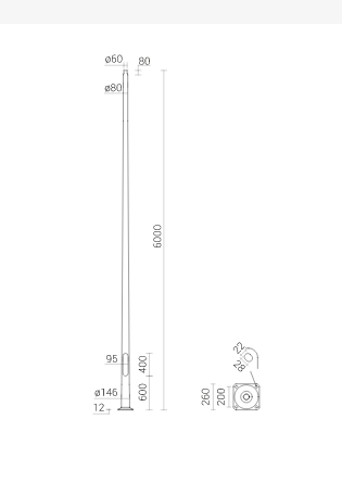 Każdy aluminiowy słup oświetleniowy posiada wnękę na złącze słupowe. Pokrywa wnęki jest wycinana laserem.