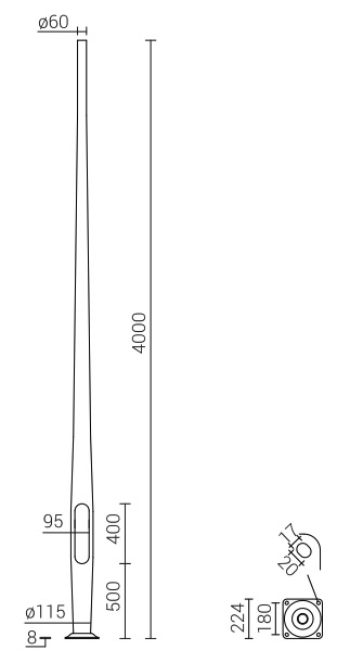 Każdy aluminiowy słup oświetleniowy posiada wnękę na złącze słupowe. Pokrywa wnęki jest wycinana laserem.