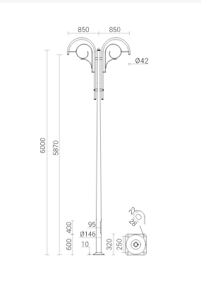 Każdy aluminiowy słup oświetleniowy posiada wnękę na złącze słupowe. Pokrywa wnęki jest wycinana laserem.