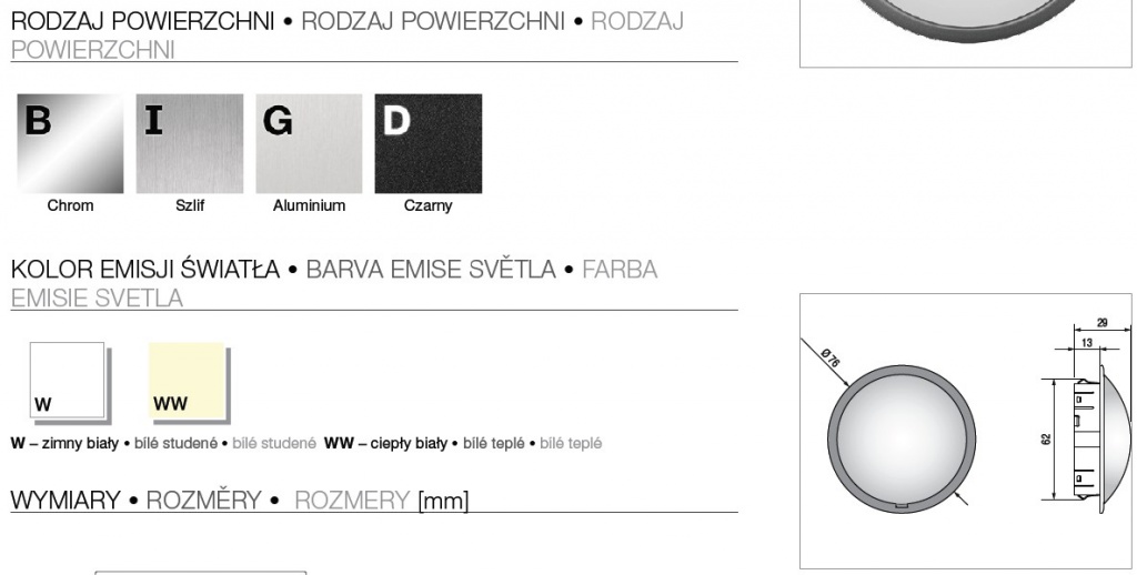 | Oprawy - parametry dodatkowe | |